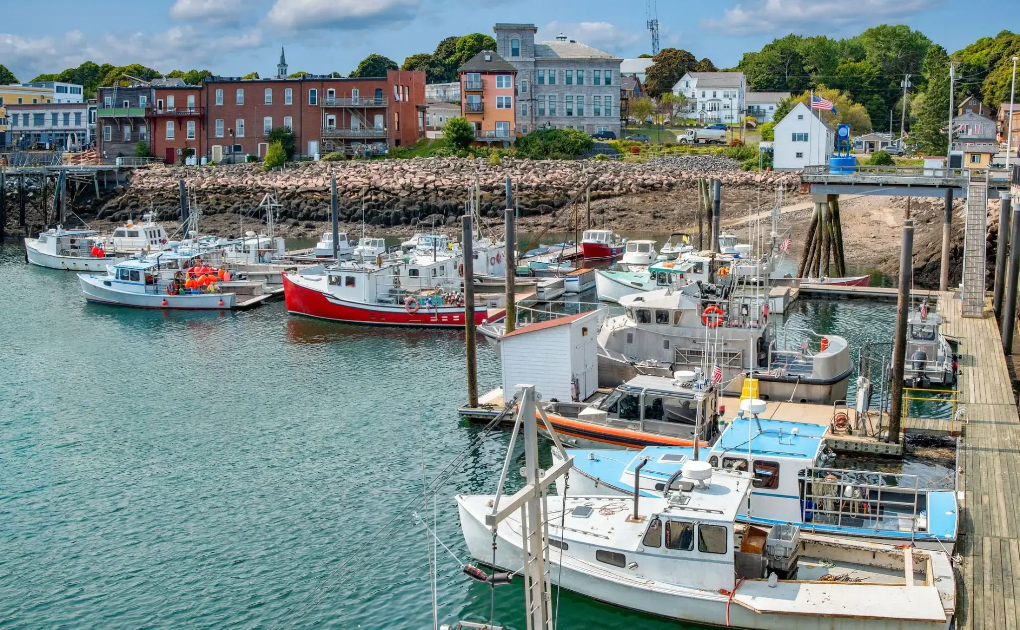 Bar Harbor is a town on Mount Desert Island in Hancock County, Maine, United States. As of the 2010 census, its population is 5,235. Bar Harbor is a popular tourist destination in the Down East region of Maine and home to the College of the Atlantic, Jackson Laboratory, and MDI Biological Laboratory (Salisbury Cove village). Prior to a catastrophic 1947 fire, the town was a noted summer colony for the wealthy. Bar Harbor is home to the largest parts of Acadia National Park, including Cadillac Mountain, the highest point within twenty-five miles (40 km) of the coastline of the Eastern United States. The town is served by the Hancock County-Bar Harbor Airport, which has flights to Boston, Massachusetts, as well as seasonal flights to Newark, New Jersey, and Portland, Maine.